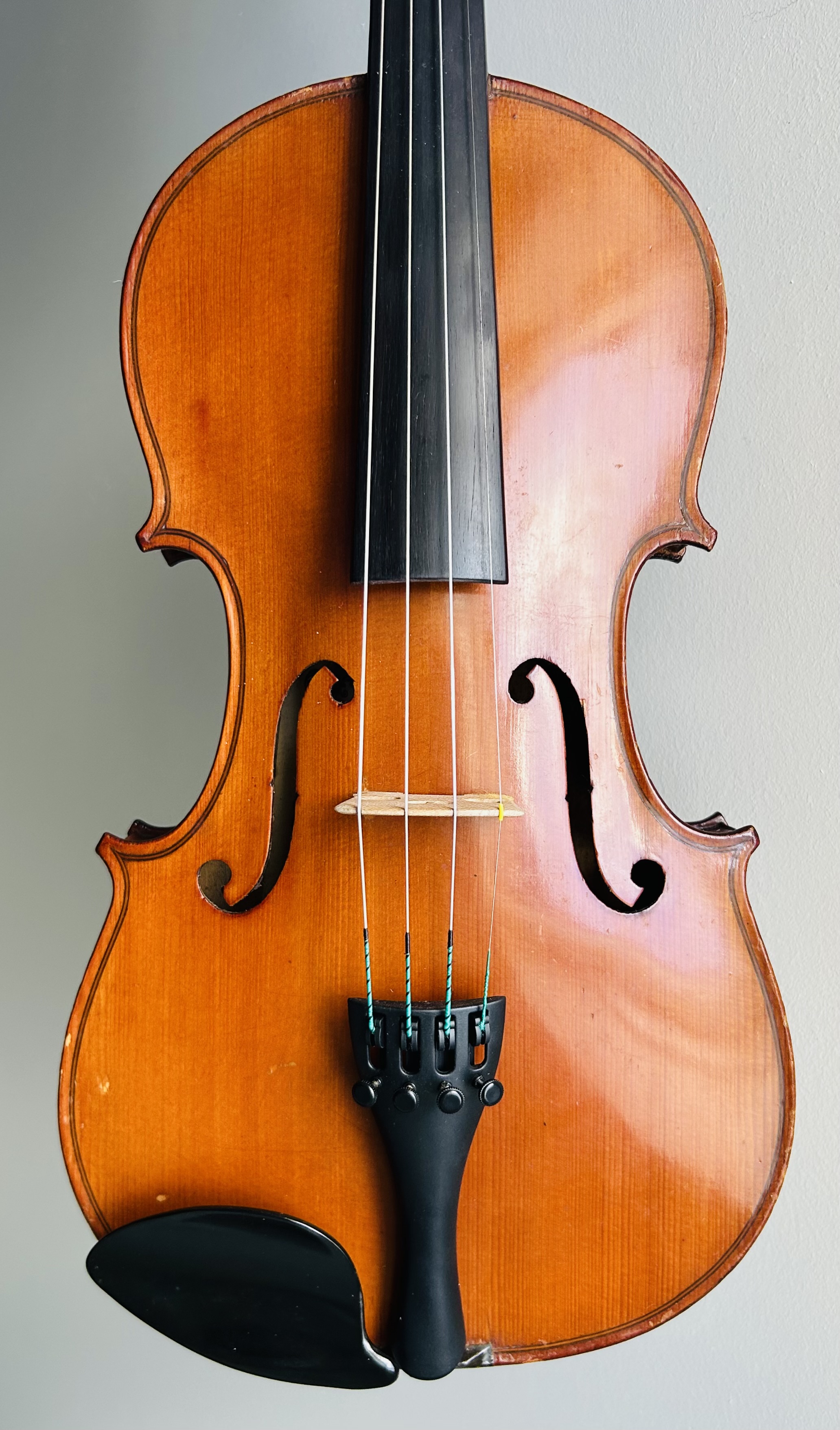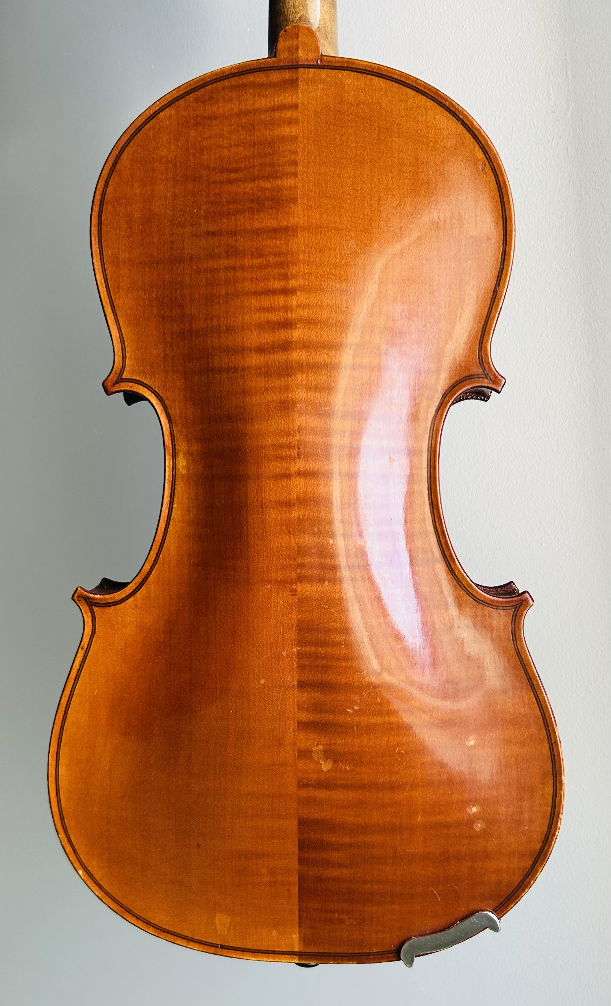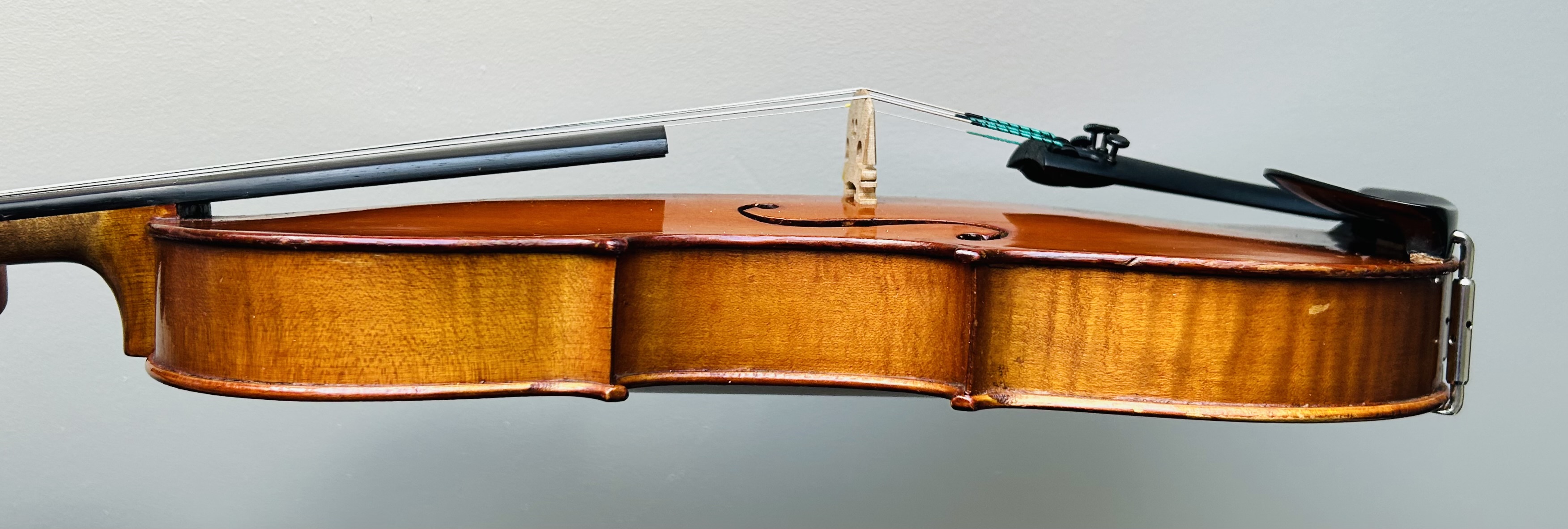 Clotelle violins are respected instruments from the historic Mirecourt region of France, produced by the renowned Laberte-Humbert Frères workshops during the 1920s and 30s. Though "H. Clotelle" was a trade name rather than a single maker, these violins were crafted using high-quality tonewoods, often featuring beautiful flamed maple and rich golden-brown varnishes, under the supervision of master luthiers. This violin offers a warm, resonant, and balanced tone and is suitable for an advancing student and traditional fiddler alike. It is in great condition and is set up with a Wittner tailpiece and Pirastro Evah Pirazzi strings.